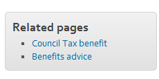 When we think something that isn’t in the secondary navigation might be relevant we link to it in “Related pages”, usually in the content, and on the right. So, for example, when someone is looking at paying council tax, we give them links into the benefits section of the site.
