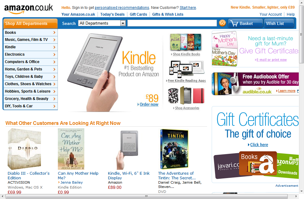 I’m not saying that there isn’t anything we can learn from such a successful website and company as Amazon. They spend vast amounts of money on design, content and user testing, and they get many many things right. But we have to be wary of the danger of “If they do it, then so should we,” not least because they are in a totally different business to us.