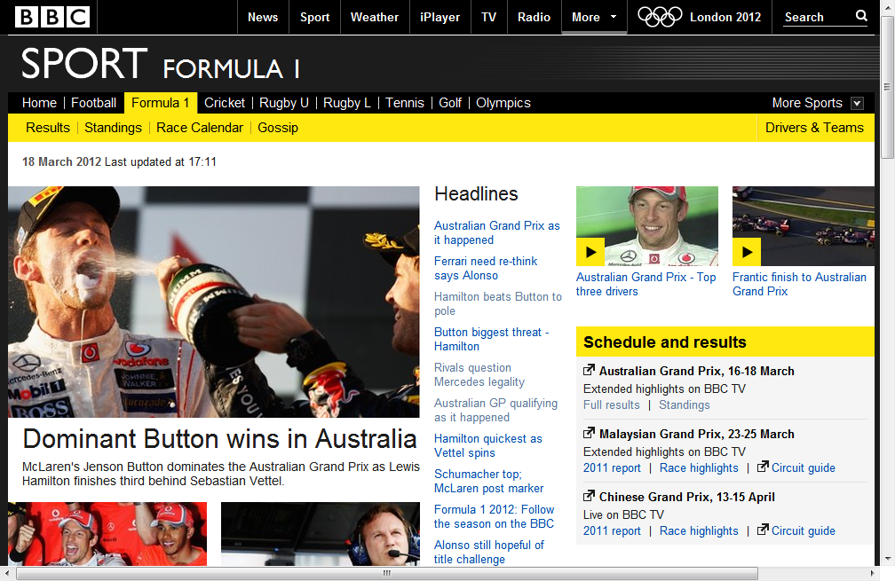 Another example of competitors with different targets are the BBC and Sky - the BBC are the public service broadcaster in the UK and Sky are a satellite subscription service. Both are in the business of broadcast TV, but the BBC is paid for by licence fee, and Sky funded by subscriptions. Even when both companies are screening the same thing, their models are different. Sky and the BBC share this year’s Formula One rights, but a quick look at the BBC F1 website, and Sky’s F1 site, shows just how different they are.