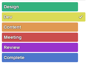 Trello allows you to quickly assign up to 6 labels to any card. We use the labels to indicate the area of the project team the card is for (i.e. development, design, and content) and to push things through our very simple project workflow.
