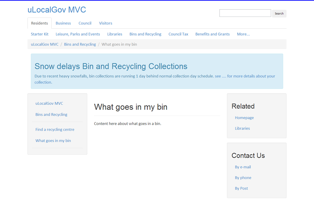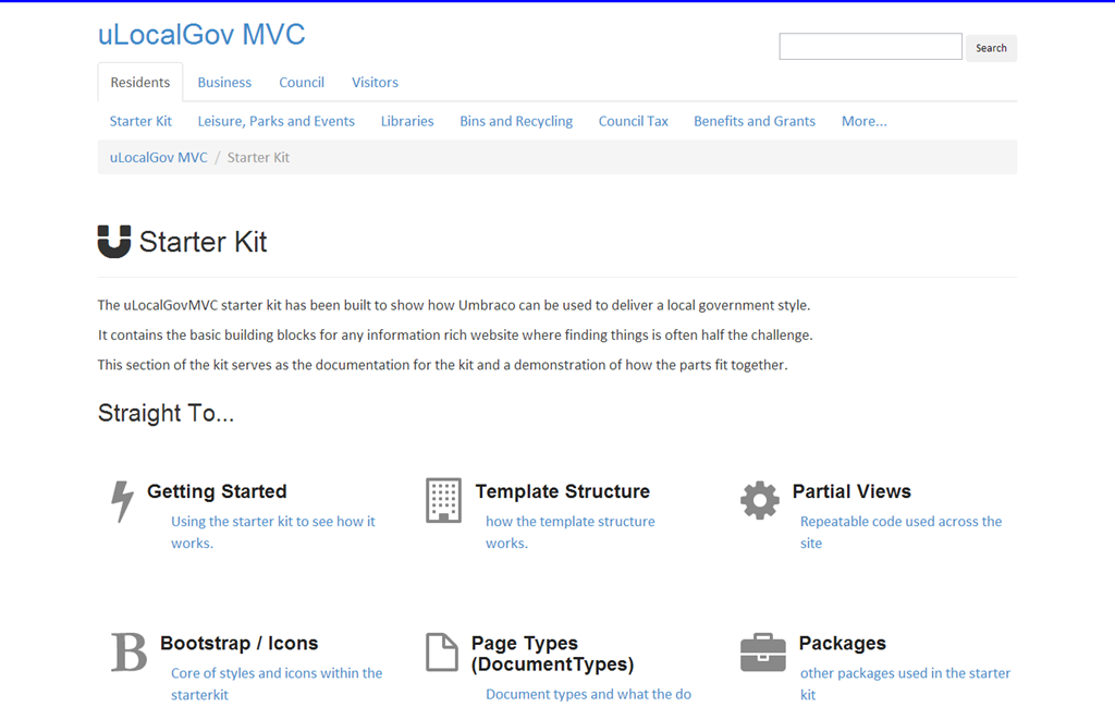 The aim of the starter kit it to give you an idea of what a local government website might look like if you where to implement it in Umbraco.