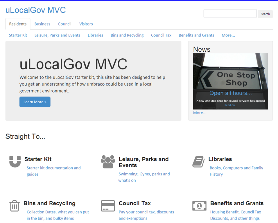 A while back, ok about 2 years ago I developed the local government starter kit for Umbraco. A starter kit is just a different type of package that builds a whole website rather than just adding a specific feature.