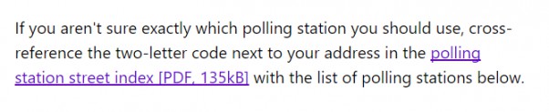 Maps a quick ‘go-to’ for many councils when it comes to geospatial information. You put the information into the system and it handles all the displaying and stuff. But there are many, many cases where the information can be better presented as text or a list, and polling stations is one of them.